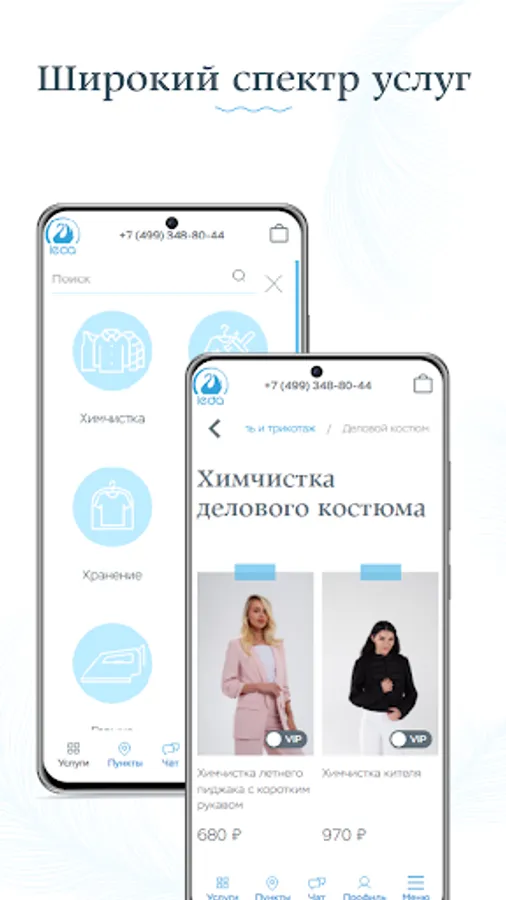 In addition to the fact that the application allows you to order dry cleaning, dyeing, storage, restoration or minor repairs, it also allows you to track the status of your order in your personal account and special promotions and discounts.