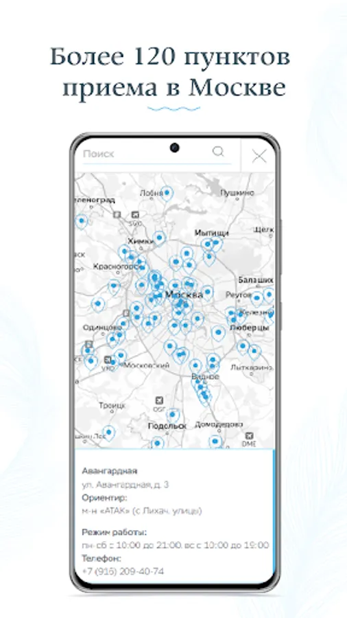 You can also bring and hand over your clothes for dry cleaning at our collection points. The network of dry cleaners Leda has more than 120 points in Moscow and the Moscow region.