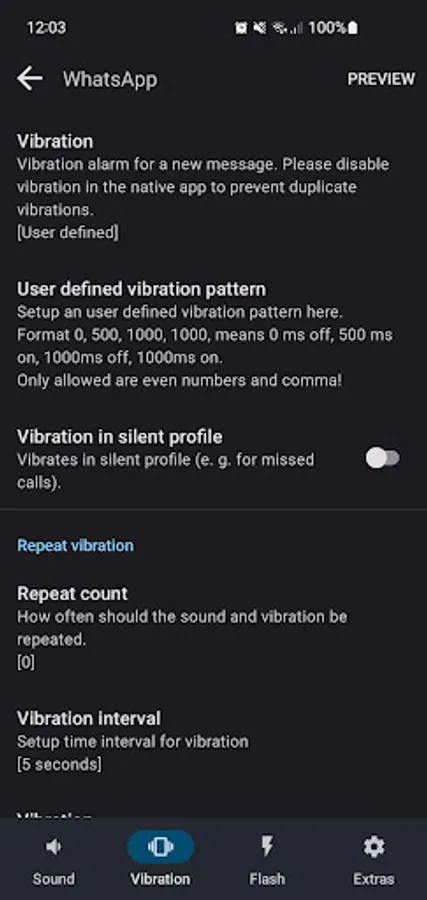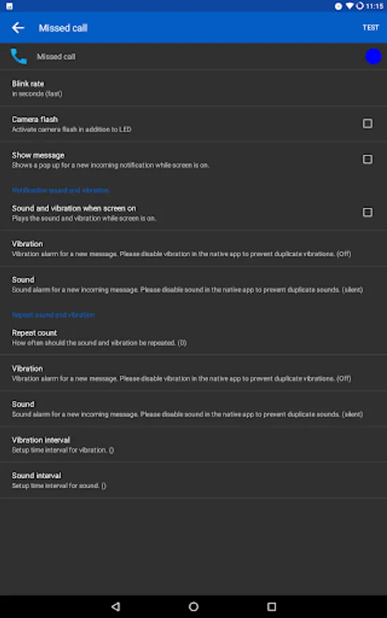 ✔ individual settings for each app, e. g. blink rate, vibration, sounds, repeats, flash