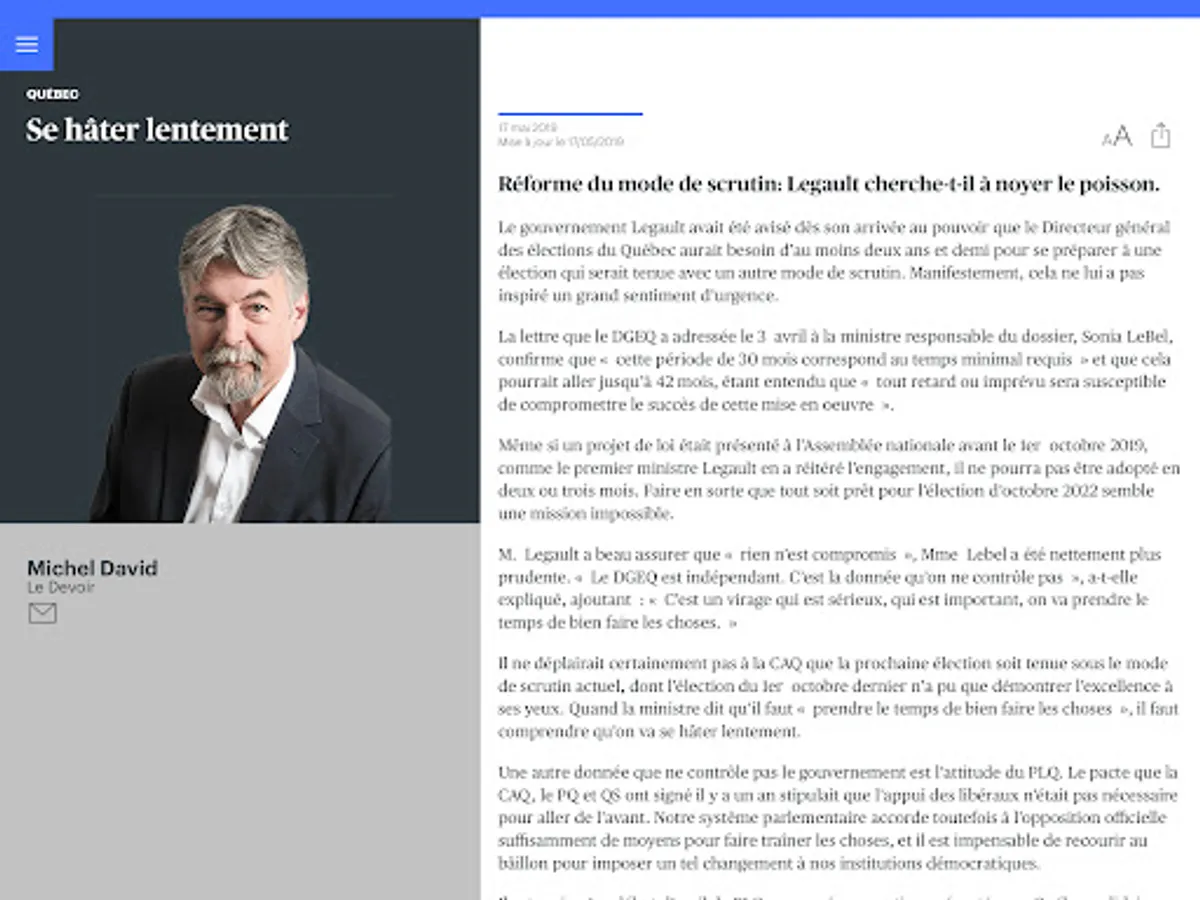 By combining quality journalism with web and video content, the new "Devoir" tablet application will allow you to deepen the news at a glance. Experience information differently and try our new application now!