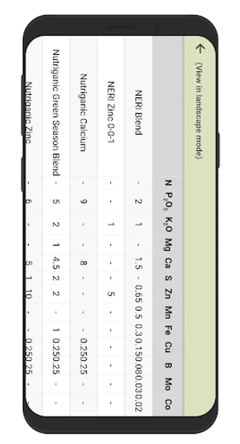 sufficiency guide. Look up data by crop