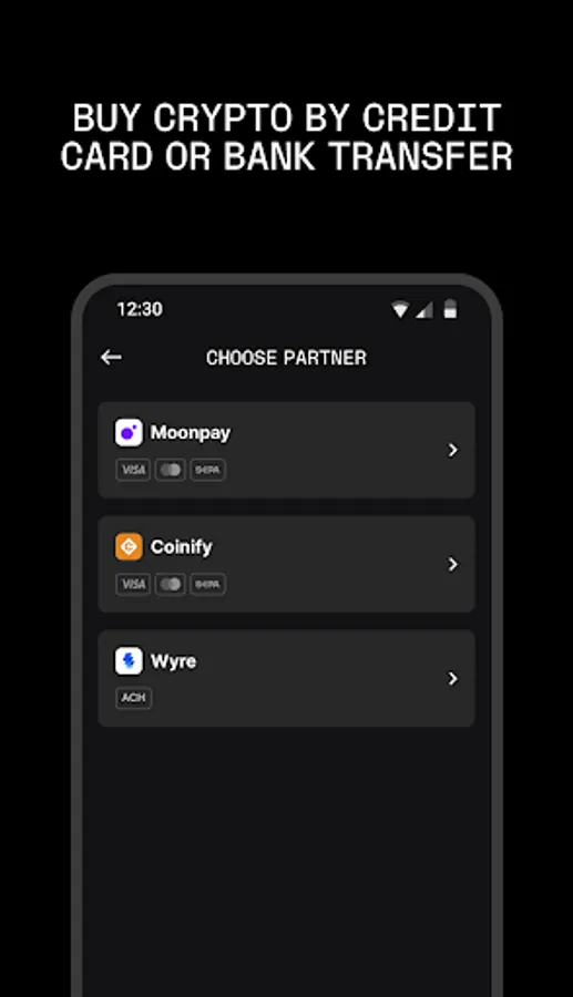 You can buy Bitcoin (BTC), Ethereum (ETH), Tether (USDT), Polkadot (DOT), Aave (AAVE) and more than 40 other crypto, by Credit Card or Bank Transfers, with the currency of your choice.