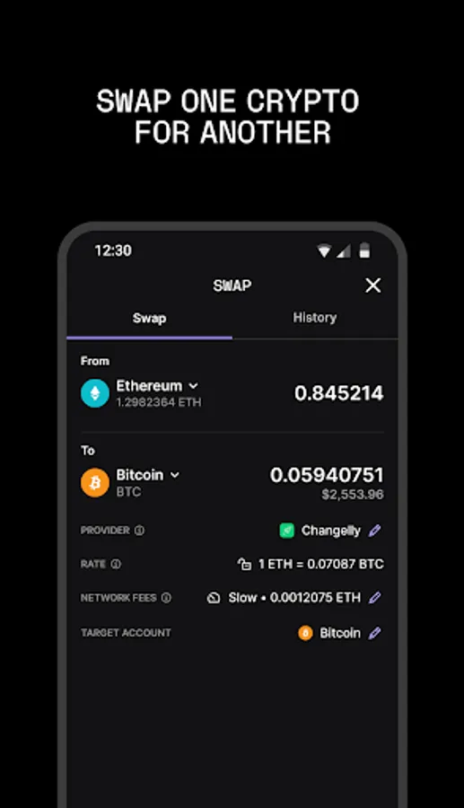 Exchange one crypto for another through Ledger Live with our partners*, in a secure and fast environment. You can swap more than 5000 different coins & tokens on our application, including Bitcoin, Ethereum, BNB, Tether, Dogecoin, Litecoin.