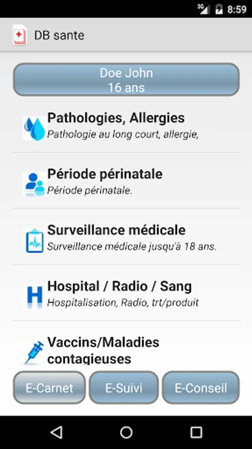 Have you ever been to the doctor, having forgotten your health book at home? Looking for a simple, mastered and especially without Internet to store your medical data? You would easily view a history of your medical visits, vaccines, or various medical consultations, then this application is for you.