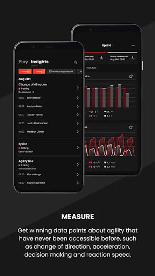 As a coach, you get winning data points about agility that have never been accessible before, such as change of direction, acceleration and deceleration, decision making and reaction speed, etc. This data is obtained by executing standardized tests and regular training sessions with the Ledsreact Pro, no wearable required.