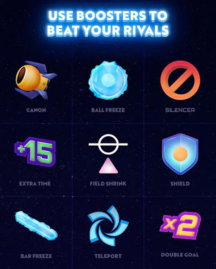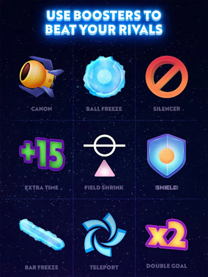 Space ball will give you an amazing adventure where you’ll challenge opponents on arenas of Ice, Fire and Light and many more to come. Show off your style with over 20 custom skins that will enhance your skills. Use fun boosters and strategically gain the upper hand in close matches at the last second.