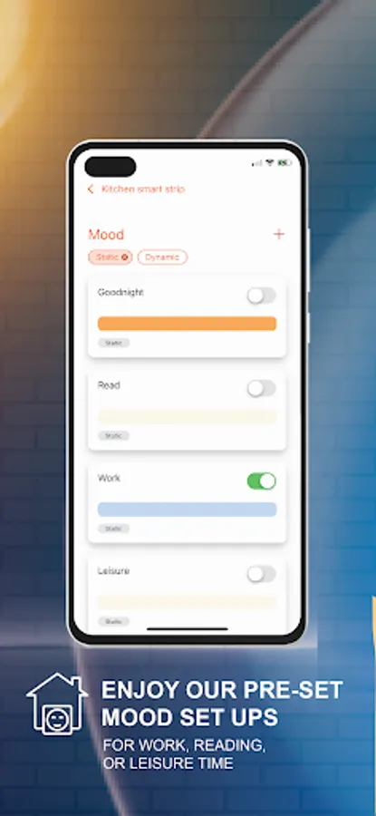 Thanks to the pre-installed light scenes, you can set different moods at the touch of a button. Of course, individual modifications are just as possible as creating personal and dynamic configurations.