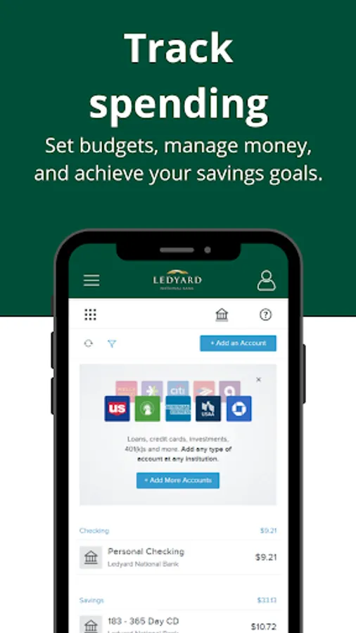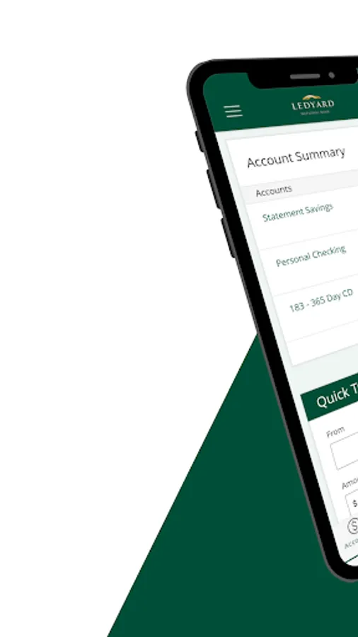 [+] Hamburger menu with all of the transactional tools needed to stay on top of your finances