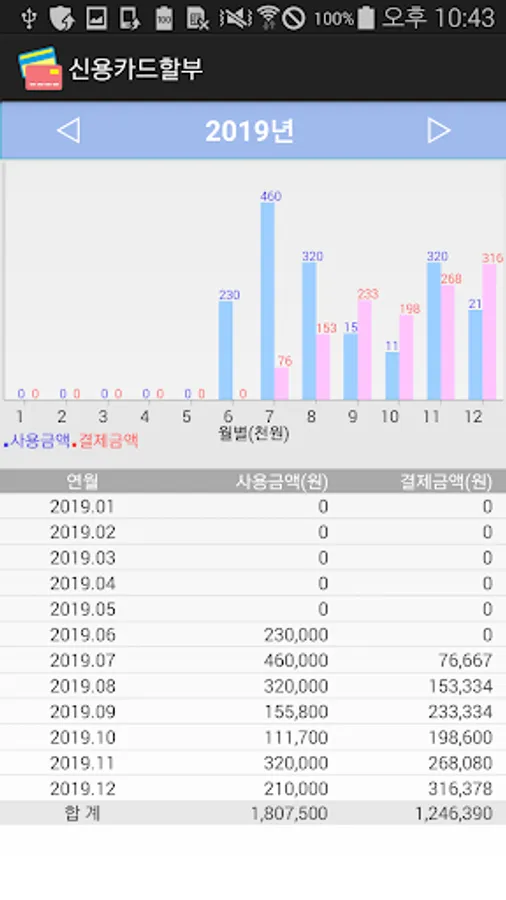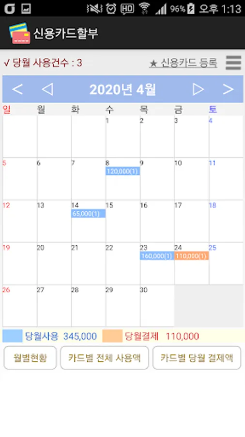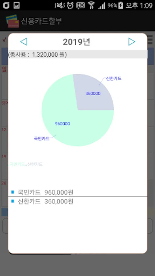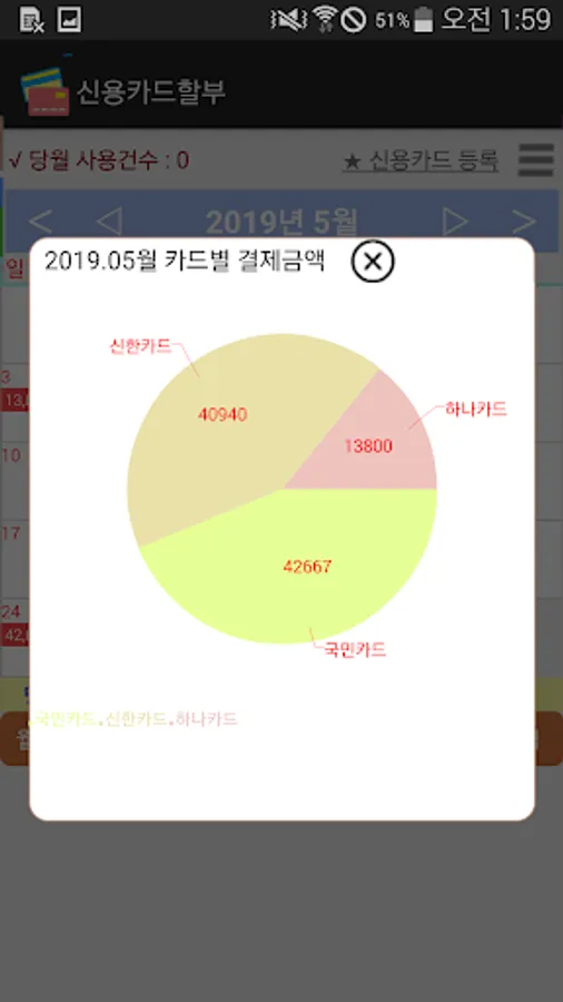 ㅇ Monthly payment amount and total usage amount displayed in the calendar