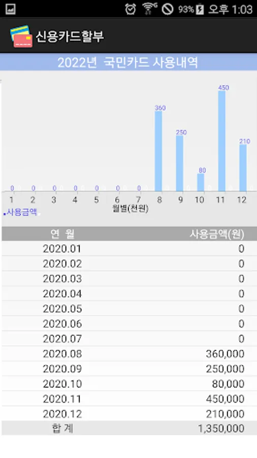 ㅇ Graphs of monthly credit card usage and installment payment amount