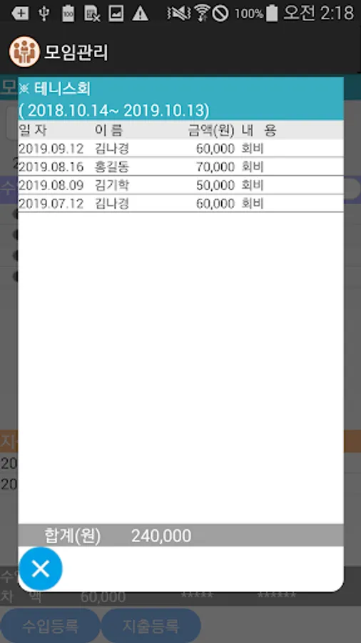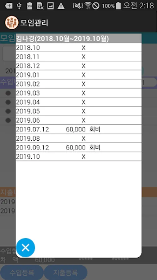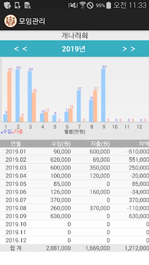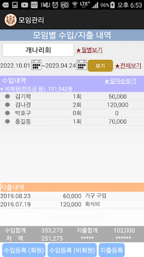 ㅇ View monthly income and expenses (membership fee status) in bulk