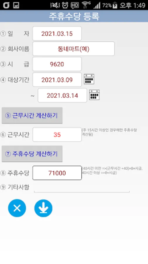 * Automatic calculation of salary is reflected by entering time such as weekly vacation allowance and nighttime allowance