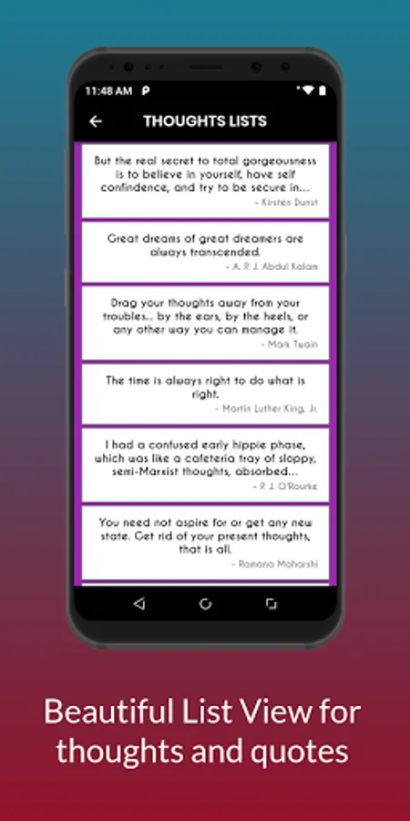 Enjoy using Thought Book Free app and get motivated reading those thoughts and quotes.