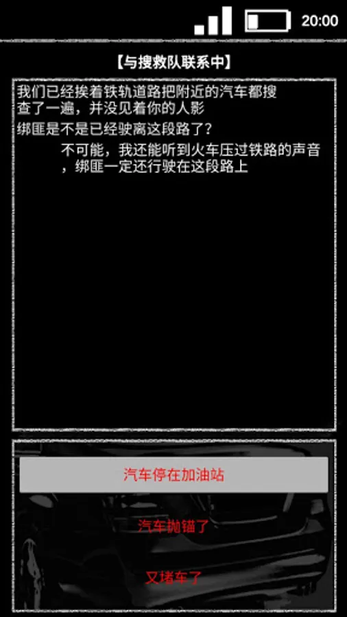 游戏主人公一觉醒来,发现自己被困在绑匪的车尾箱里,他只能用身边仅有的一台破手机进行自救……