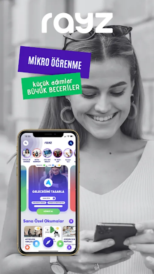 Yıl olmuş 2021, 10 sene önce hayal bile edilemeyen meslekler en gözde meslekler halini almış, kimse bir 10 sene sonrasını tahmin edemiyor... Sana diyorlar ki tüm yeteneklerini bir yana bırak, kariyerini biz çizeriz... Biz diyoruz ki hayır olmaz! Sen başkasın, çok başkasın, bambaşkasın... Biz diyoruz ki kariyerine Rayz App’le yürürsün, hatta sen yeteneklerinle yürümekle kalmaz, şirketlere aranan kan olur, projelerden projelere koşarsın. Seni hemen şöyle alalım;