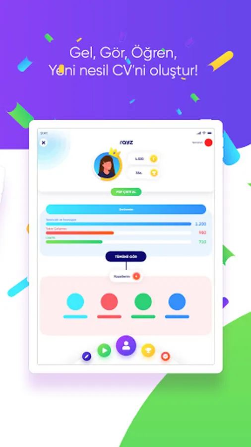 Rayz App ile vaka çalışmaları, araştırma projeleri, tasarım görevleri, ürün geliştirme fikirleri, girişimcilik, piyasa analizi, prototip geliştirme, sosyal kampanyalar oluşturma gibi onlarca farklı görev tipleri ile yeteneklerini geliştirip, lider şirketler tarafından keşfedilebilirsin. Online staj, eğitim bursu, mentorluk, CEO’larla buluşma, workshop daveti, yurt dışı seyahati ve çeşitli fiziksel ödüller kazanma fırsatlarını da Rayz App sayesinde yakalayabilirsin.