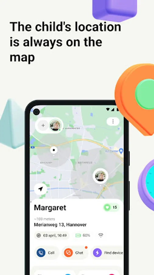 The LEEF LINK application uses the integrated LBS service, which allows you to get a more accurate location of the child in buildings using data on the location of Wi-Fi access points and base stations (BTS) of mobile operators.