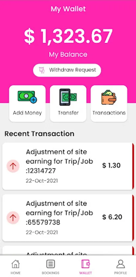 Leeft Driver App has an inbuilt destination feature and in-app wallet to enable drivers/providers to transfer money to each other