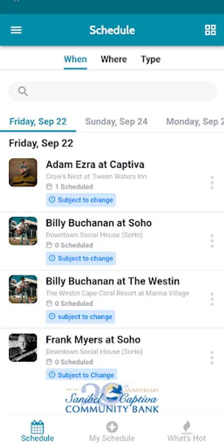 Island Hopper Songwriter Fest is a 10 day live music event that takes place across multiple geographic locations in Southwest Florida: Captiva Island, Downtown Fort Myers, Cape Coral, and Fort Myers Beach.