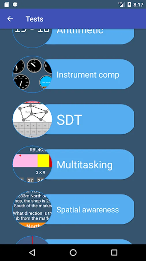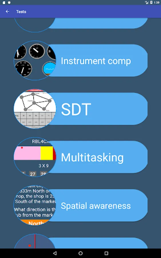 Games included are as follows; arithmetic test, instrumental comprehension test, SDT tests, multitasking test, spatial awareness test, co-ordination tests and memory tests.