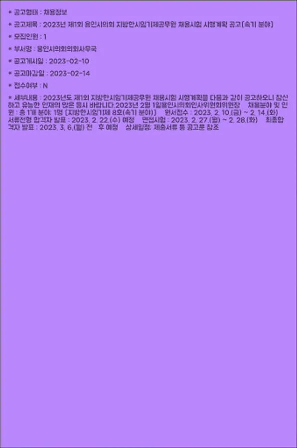 (Yongin-si, Gyeonggi-do_Recruitment and test information inquiry service)