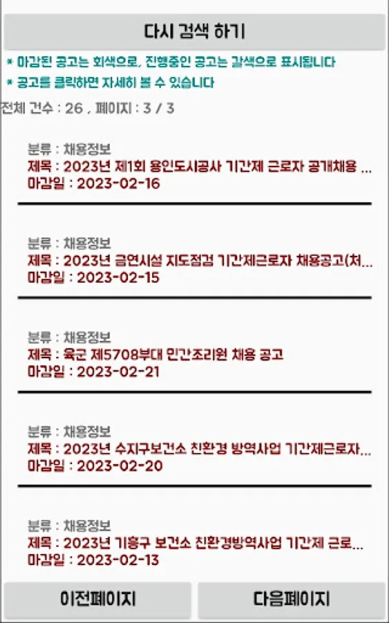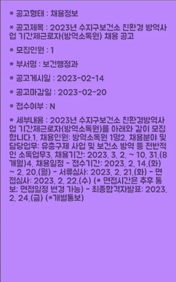 You can search and check detailed information by utilizing real-time job posting information provided by Yongin City.