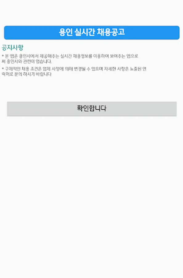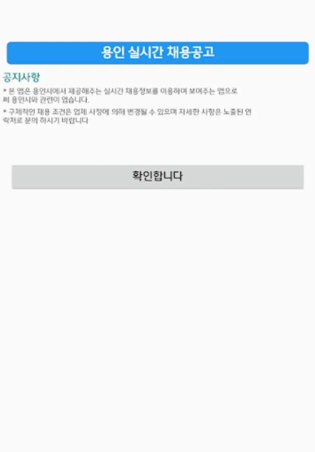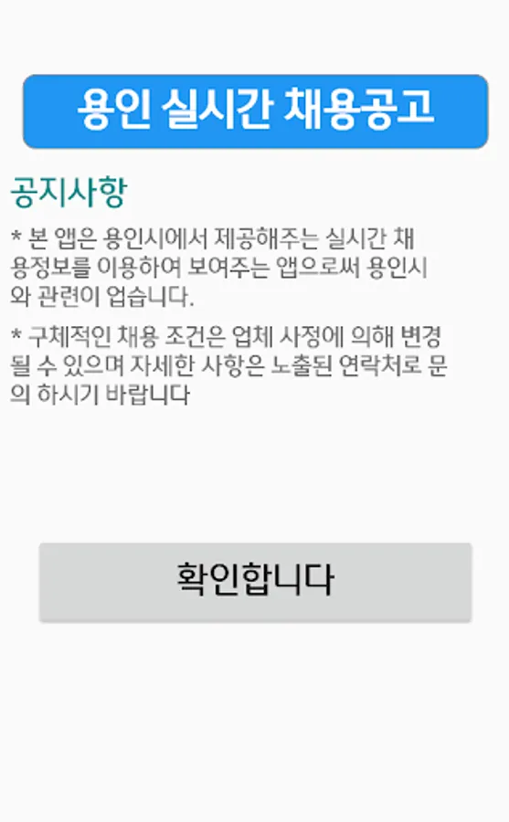This app is not related to Yongin City and does not represent Yongin City or any specific government agency as it is an app that shows detailed information using real-time job information provided by Yongin City.