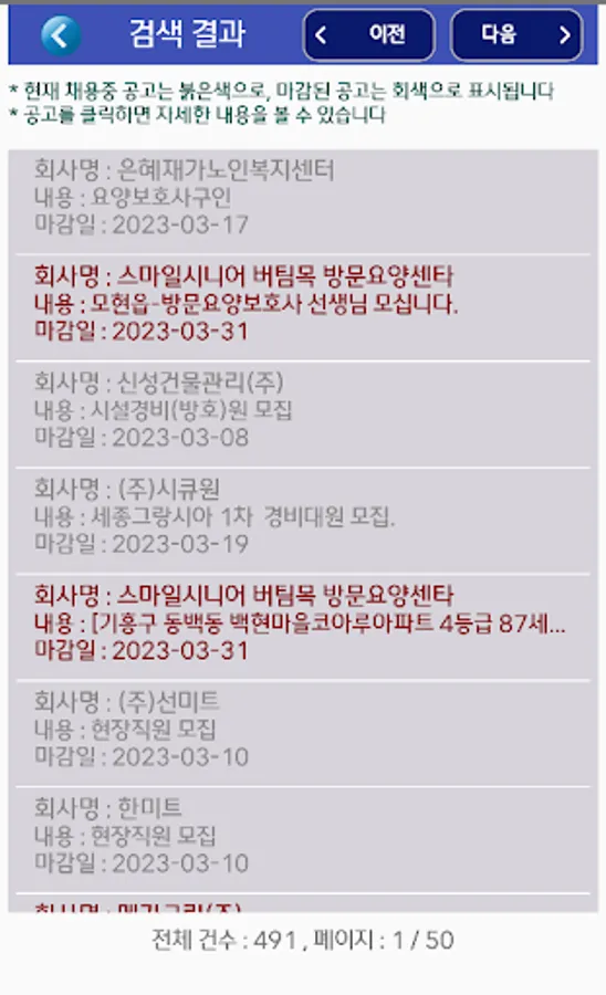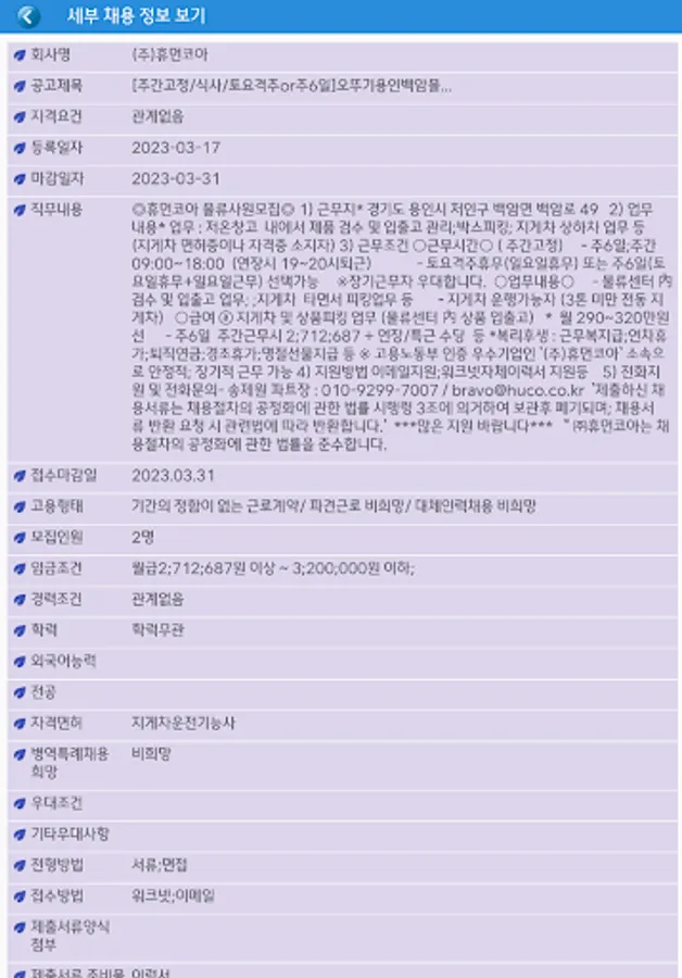 You can search and check detailed information by utilizing real-time job posting information provided by Yongin City.