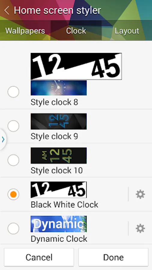 - Go to Gear Fit Manager → Home Screen Styler → Clock tab → Style Clocks.