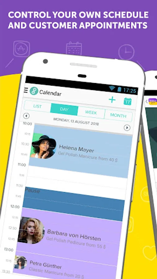 📲 Online Booking 24/7 - Your schedule is available to your clients 24/7, so they can book your free slots if you are busy.