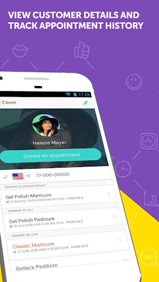 👩 Client Management - View customer details and track appointment history. Keep private notes to remember birthdays, preferences, etc. Personal approach will keep small business customer-oriented and your services in demand.