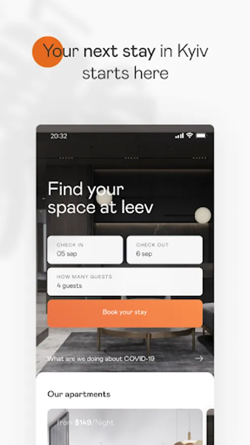 Leev – that's all you need to book an elite apartment in Kyiv from your smartphone. We know how important it is to feel at home, when you are away from it.