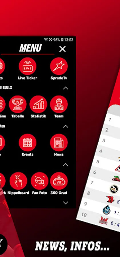 You always get the latest information (news, fixtures, tables, live ticker and statistics) about your favorite team straight to your mobile phone and are always up to date.