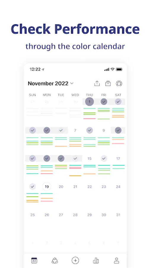 - Check your meal time and meal score in your calendar to assess your diet habits.