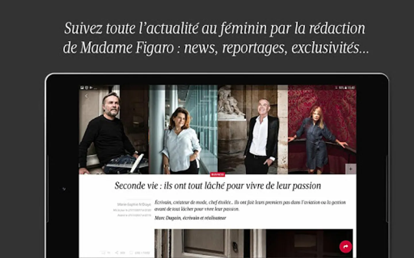 Enjoy reading with your women's magazine Madame Figaro! We modify and improve the application regularly: to be sure (e) not to miss anything, turn on automatic updates from the Google Play Store. Continue to send us your comments and suggestions to: mobilite@lefigaro.fr.