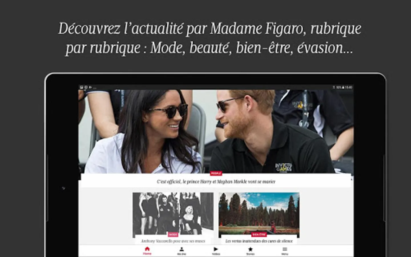 Specially designed for Android, the new application Madame Figaro presents news in women's (fashion news, beauty tips, welfare, society, celebrities news, culture, decor, kitchen ...), new features (revenue kitchen, search, videos, astro the month, yearly horoscope and Chinese) and innovative shopping services and practices.