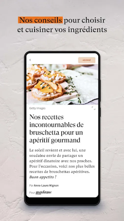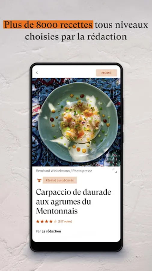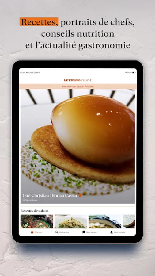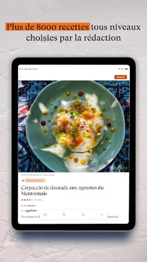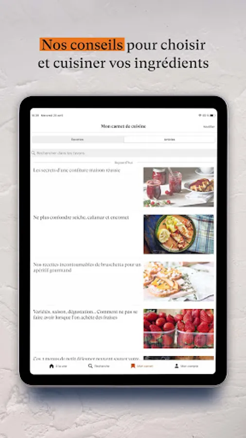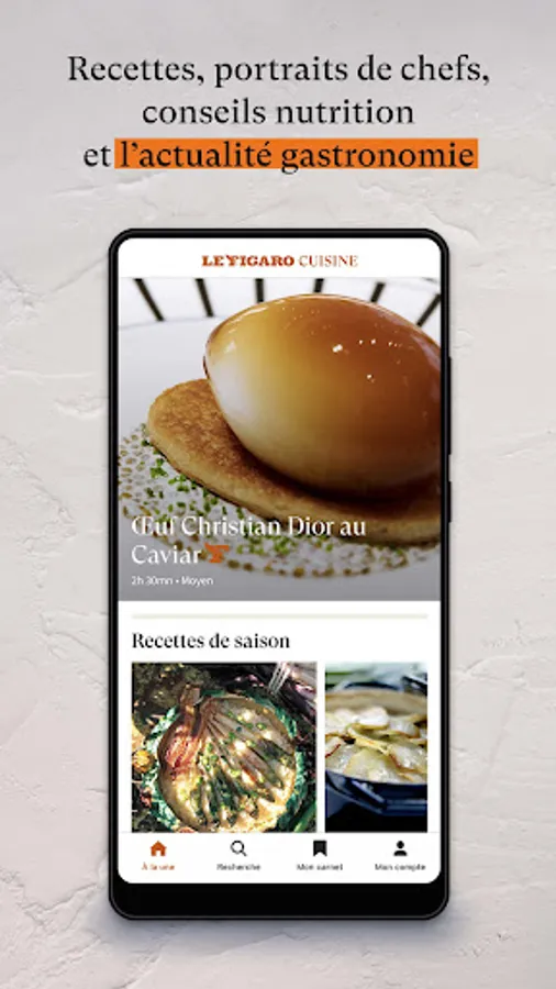 Le Figaro Cuisine, a reference application, brings together a selection of quality recipes and thousands of articles.