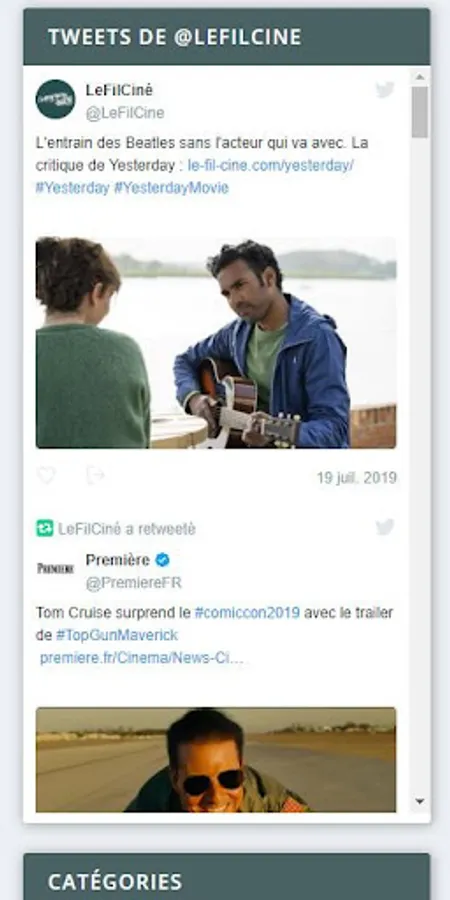 Regular chronicles of cinema releases in 1500 characters. News of the cinema and ceremonies Oscars and Caesar and the Cannes Film Festival. Top 10 annual.
