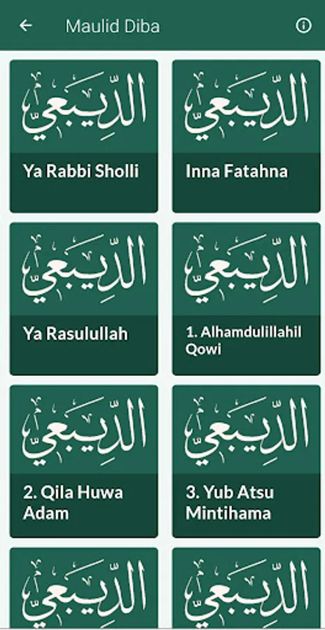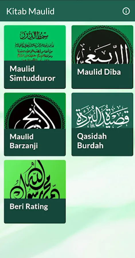Complete Book of Rawi Maulid Nabi Application - Available in Arabic text and Indonesian translation, also equipped with Offline MP3 Audio for each rawi reading.