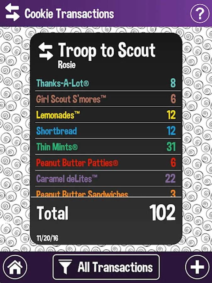 Created by an experienced Girl Scout cookie-selling family who volunteers as their troop cookie manager. Special care was taken to make sure the app is simple to use yet full of time saving features.