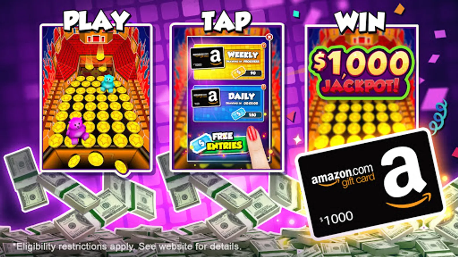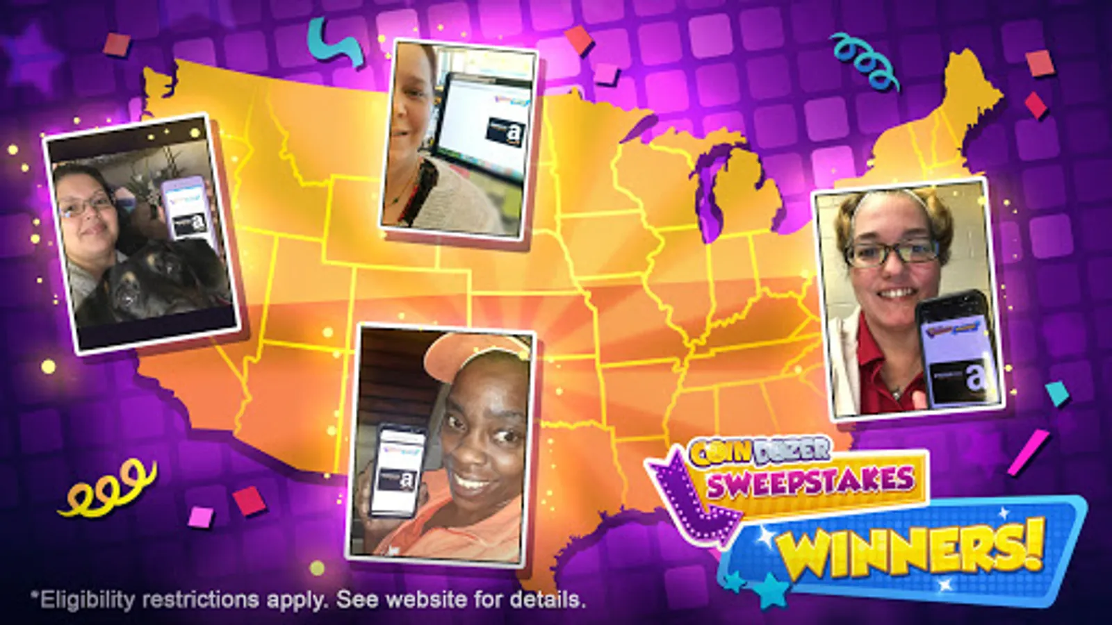 NO PURCHASE NECESSARY. Must be a resident of the US, GB, FR, DE, JP, or IE; age 16+; Level 3 in Coin Dozer; and invited by Sponsor to participate. 100 daily winners and 500 weekly winners randomly selected to get digital Amazon.com Gift Cards (ARV $1-$1000 each. Official Rules Total ARV of prizes for each daily sweepstakes $335; each weekly sweepstakes $2,270.) Odds depend on no. of eligible entries. Daily sweepstakes ends 7:59pm ET each day. Weekly sweepstakes ends 7:59pm ET each Sunday. Visit https://gcirc.us/gcsweeps for full rules, prizes, how to enter, and other restrictions.