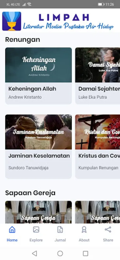 Aplikasi Limpah ( Literatur Media Pustaka Air Hidup ) adalah Aplikasi yang menyediakan bahan-bahan rohani dengan menggunakan kekayaan multimedia ( audio, video, gambar dan teks) untuk pertumbuhan rohani kita semua.