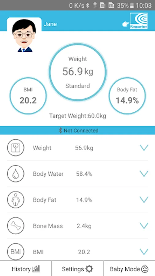 This application allows you to easily monitor essential health and fitness data for : Body Weight, Body Fat Rate, Body Water, Bone Mass, Muscle Mass , BMI ,BMR and Visceral Fat. From the graphic displays, you can check changes in health trends. Kingcenton Health helps all our users stay on track for a healthier lifestyle.