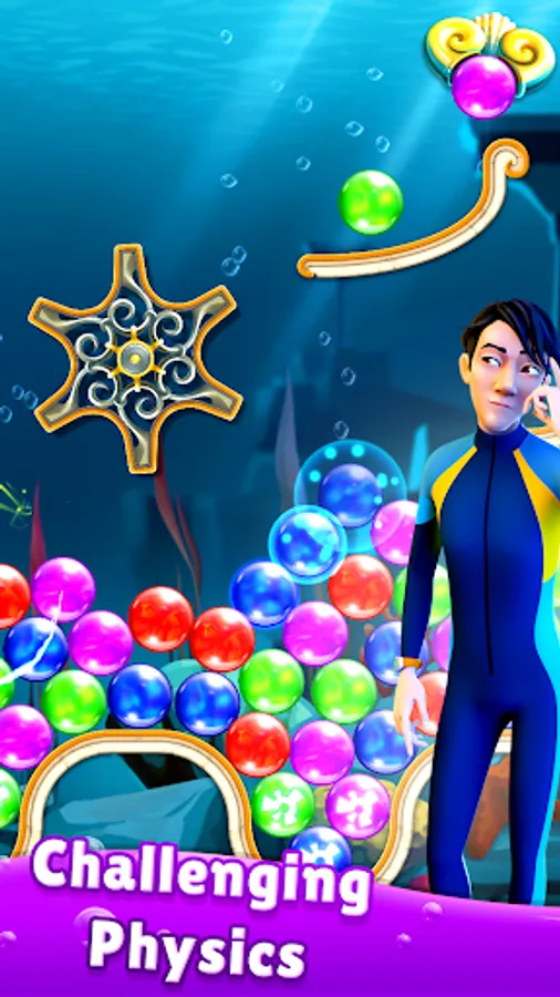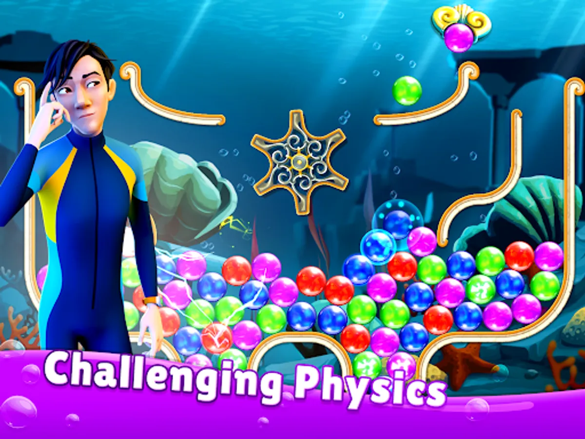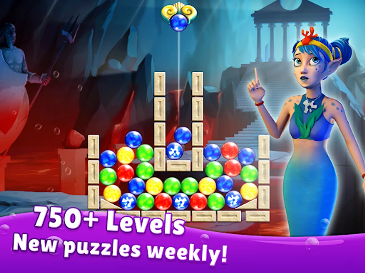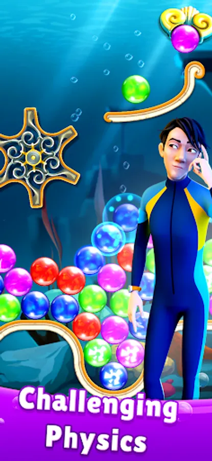 Face tricky underwater physics as you solve more than 800 addictive bubble popping puzzles. Navigate bumpers, wheels, and moving platforms as you go! Use power-ups like the explosive hammer, the friendly charm grabbing jellyfish, and Triton’s frightful lightning to smash all the obstacles in your way! It takes strategy and precision to beat these unique and challenging bubble shooter puzzles.