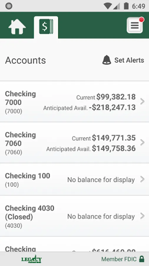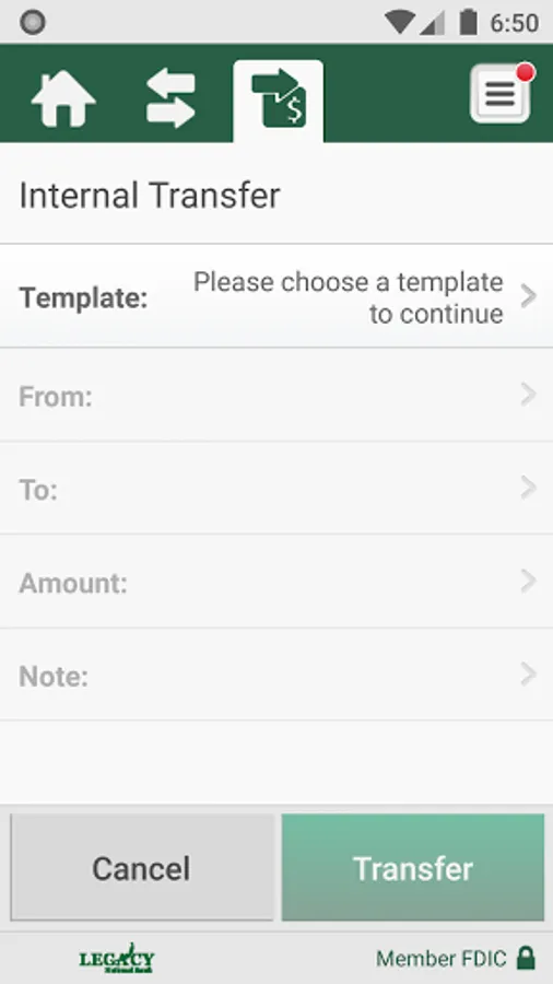 Getting started is easy. Simply download the app and sign on with your Business Online user credentials. [No additional fees apply.1]. For more information about Legacy National Bank mobile services, please call us at 479-717-1900.
