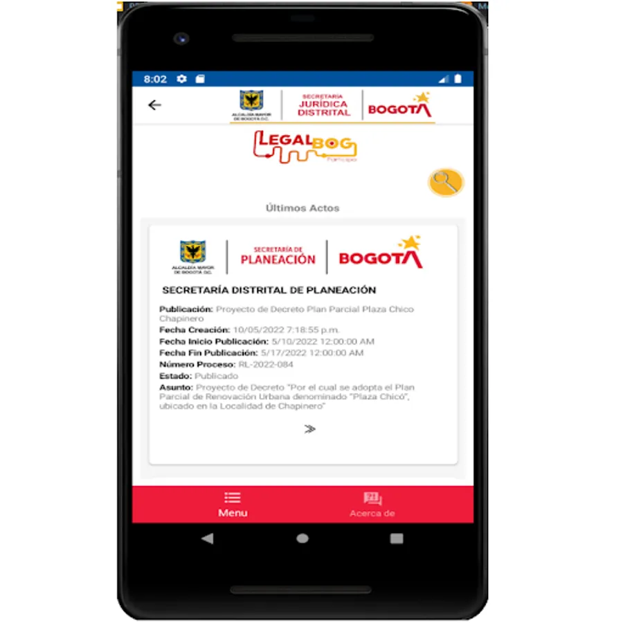 In the development of public legal management, the District Legal Secretariat established the integrated legal information system - LegalBog, which includes functionalities, among which is support for the review of the legality of projects of administrative acts, which allow meeting the legal needs of district entities and stakeholders.