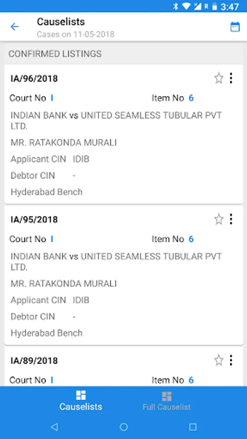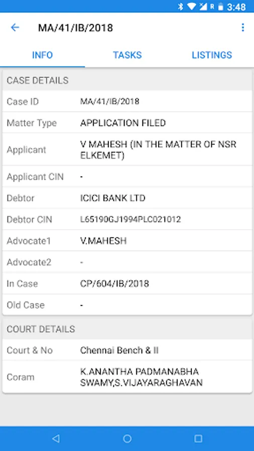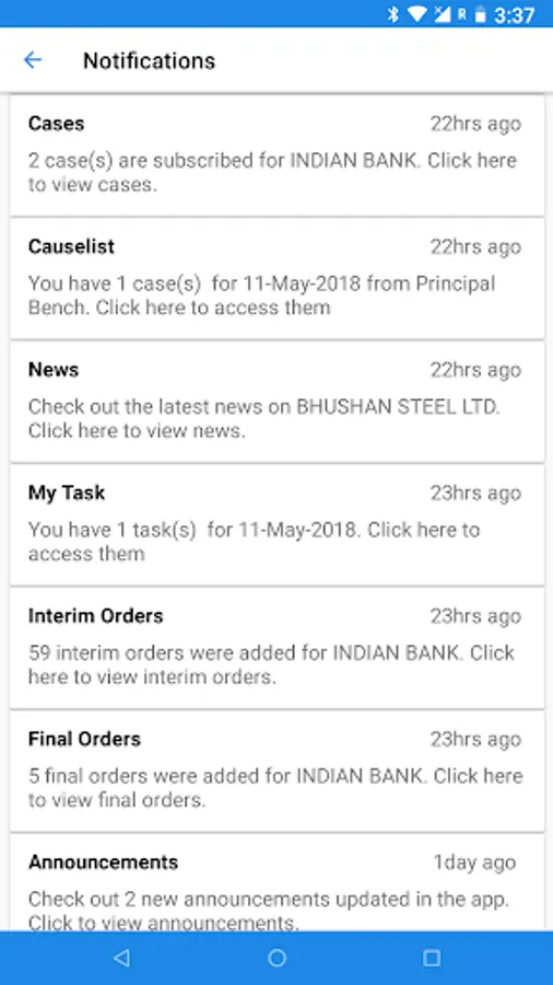 Get your case listings, interim orders, final orders and News for all your NCLT and NCLAT cases, wherever you are, in your mobile or desktop. You will get notification and email, when you case gets a new date, or order.