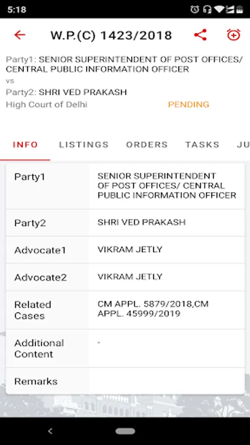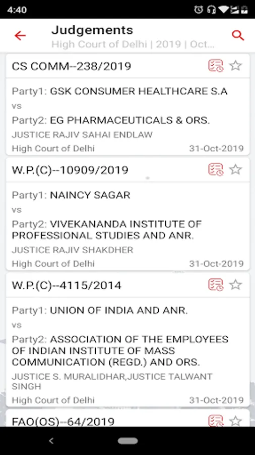 Add your cases to the app and manage them on the go. Get a personalized causelist with court and item numbers. Be up to date with real-time cases hearings and order