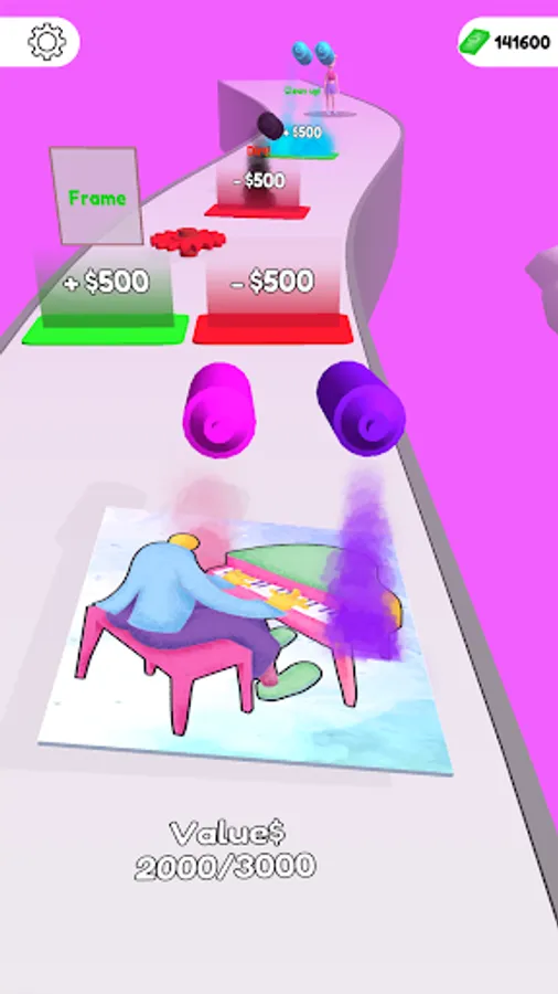 Paint with the color sprays, avoid obstacles, put your background, put your frame, sell your art. Enjoy a variety of paintings and bonus levels.