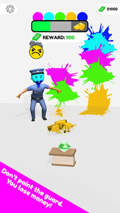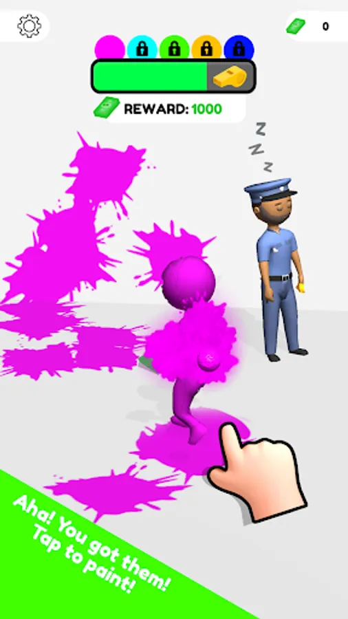 Spot the robbers, throw paintballs to reveal them and wake up that sleepy guard.